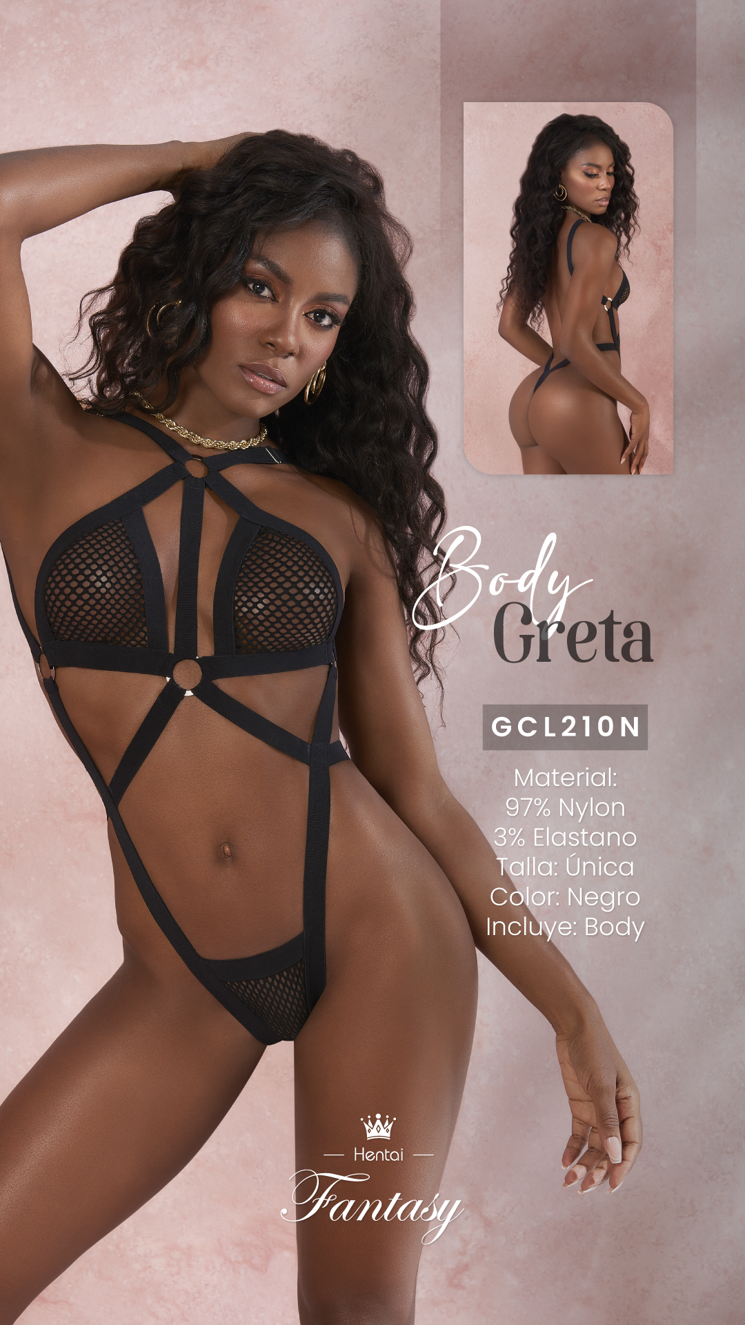 Body de malla transparente que revela sutilmente tu piel, tiras entrelazadas a tu abdomen ideales para resaltar tus curvas. La espalda descubierta aporta ese toque atrevido que transforma cualquier momento en puro deseo.