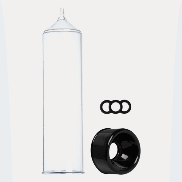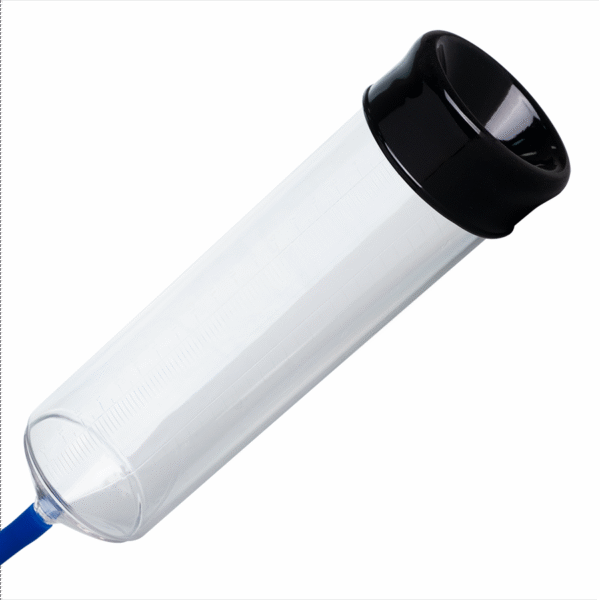 - Inserta el pene en el cilindro. El cilindro debe presionarse firmemente contra la base del pene y área púbica para evitar el escape de aire.