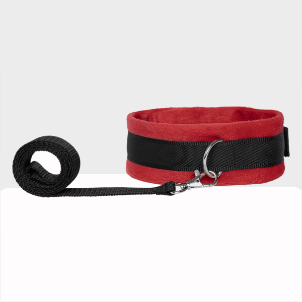 Diviértete al máximo en tus juegos de dominación con este kit de bondage, que incluye: Látigo, paleta, collar, correa, tapa ojos y juego de esposas para manos.