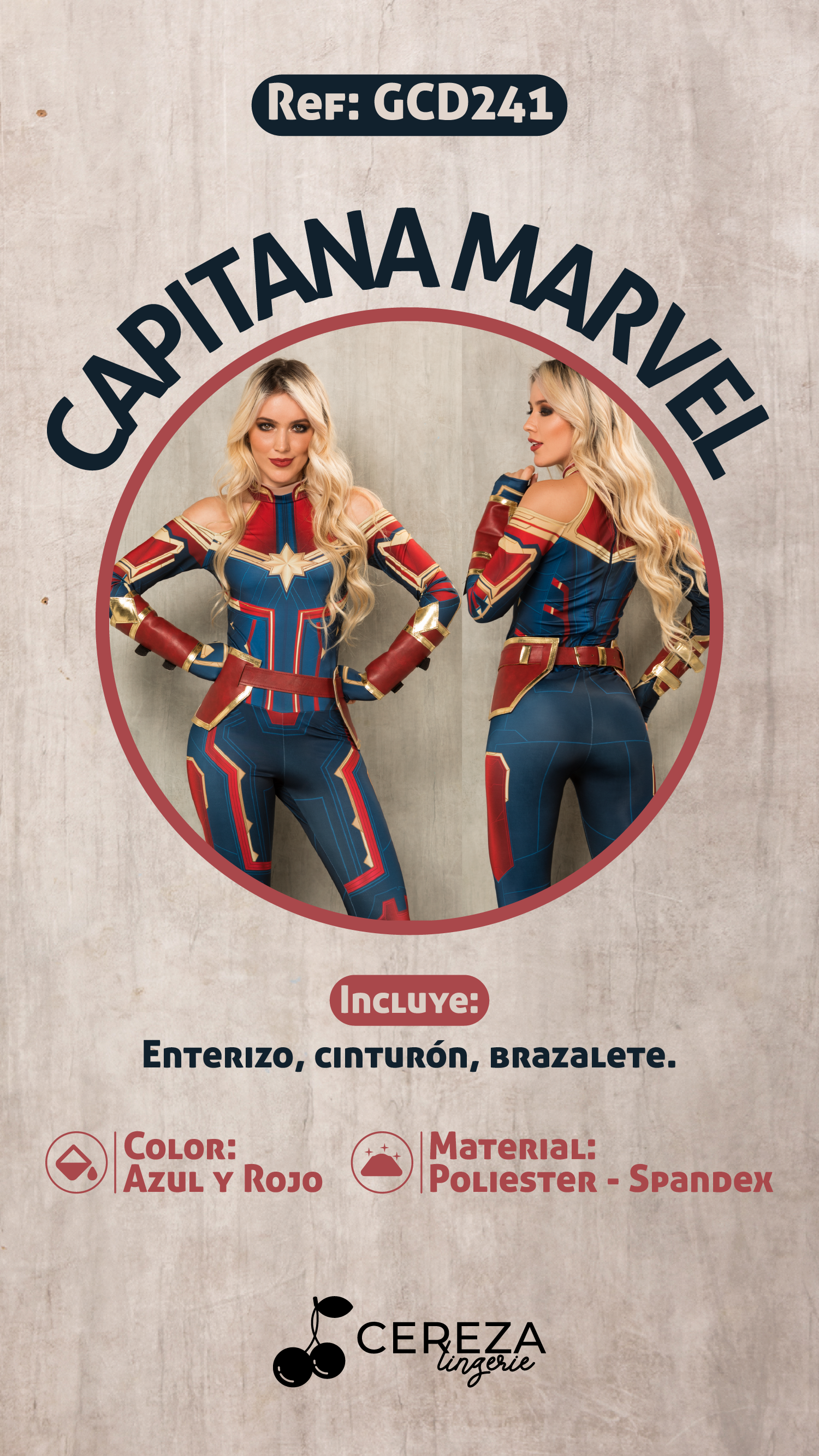 - Incluye: enterizo, cinturón, brazalete.