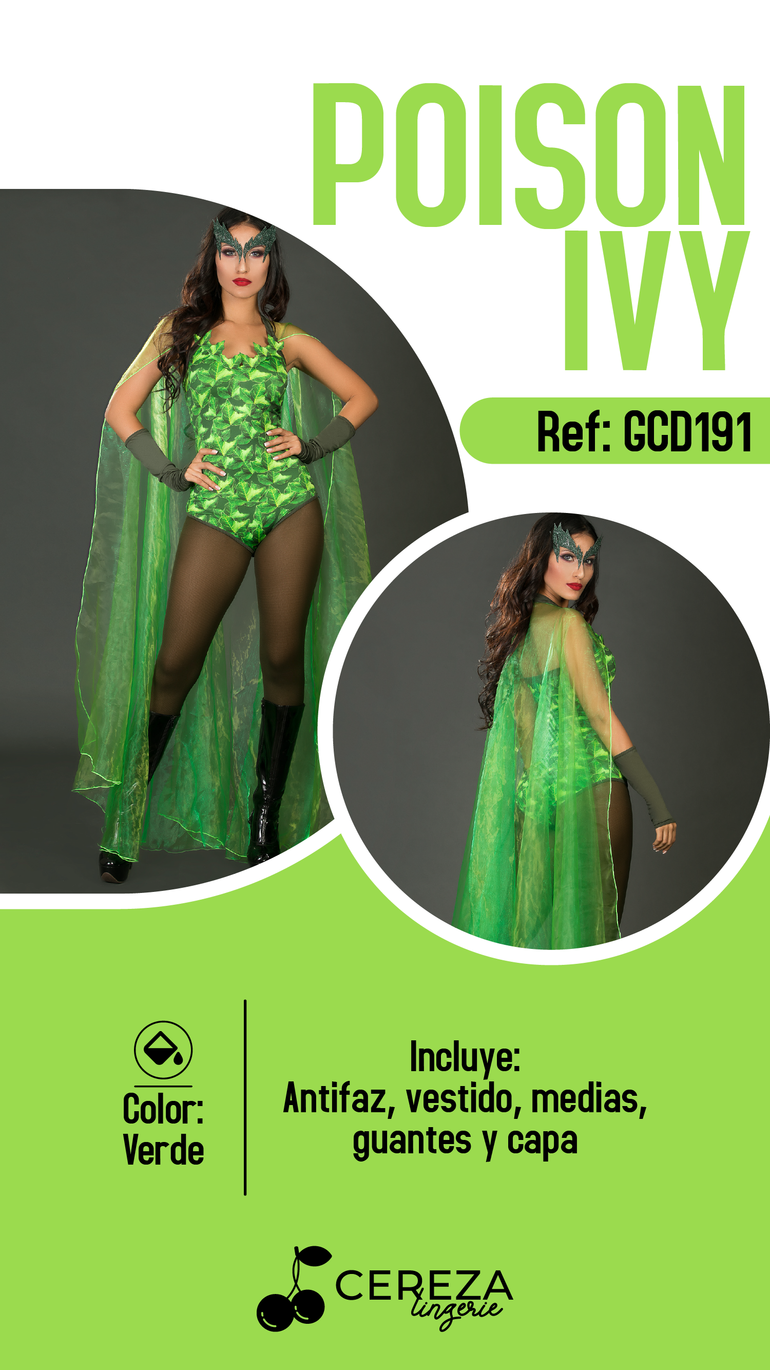 - Incluye: Antifaz, vestido, medias, guantes y capa